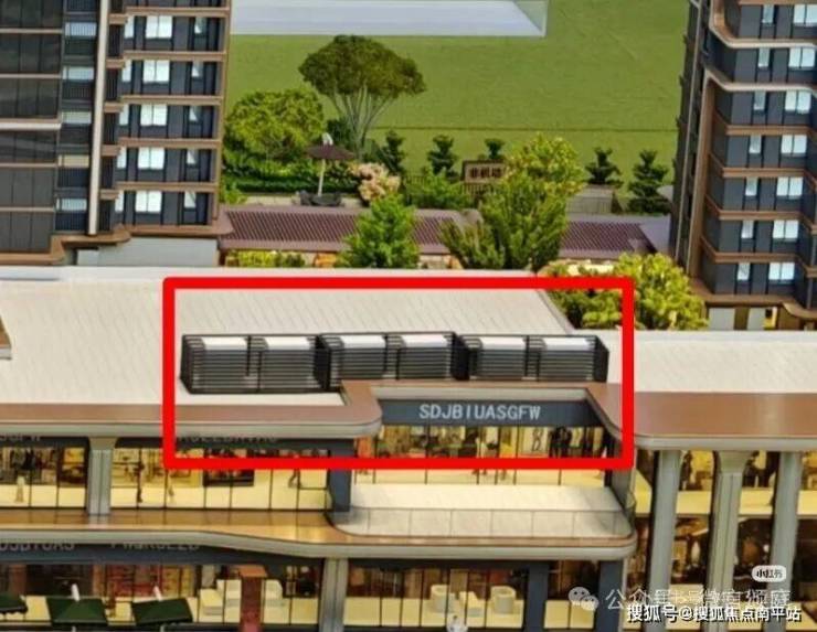 而底商顶部的中央空调,在沙盘上用实物进行了标注(图9)夏天如果中央空调开启,噪音对旁边的住户也会产生很大的影响。