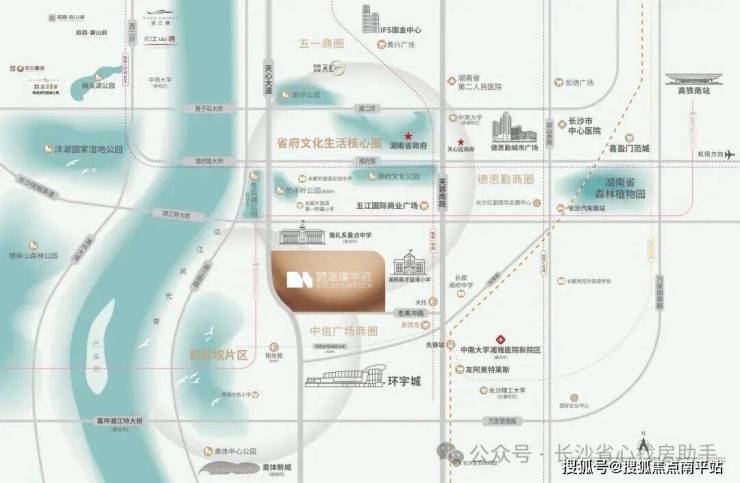 未来,将以距离本项目约2公里(直线距离)的湘雅医院作为核心,发展攻关研发圈、创新孵化圈、产业发展圈,并引入长沙医学院附二医院、南华大学附属七医院等。