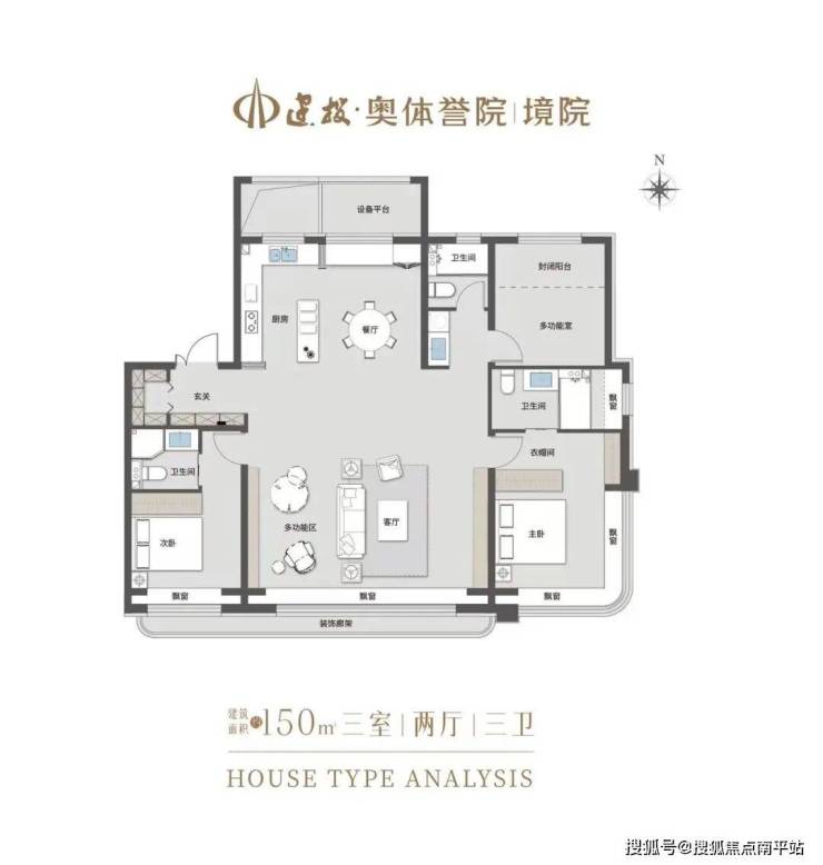 住宅产品主要包括建筑面积约89-120平方米的湖院小高层、120-150平方米的境院洋房。社区配套方面,小高层产品配建约2000平方米多功能泛会所,洋房产品采用一梯两户设计,部分单元设有首层下沉庭院与顶层星空露台。项目采用无连廊设计,以拓展中庭景观视野;外立面选用香槟金色铝板与Low-E玻璃幕墙,融入东方弧形飞檐元素;园林景观以“一带两轴两院五环九境”为结构,营造多元景观空间。目前,建投·奥体誉院营销中心及样板间已正式对外开放。