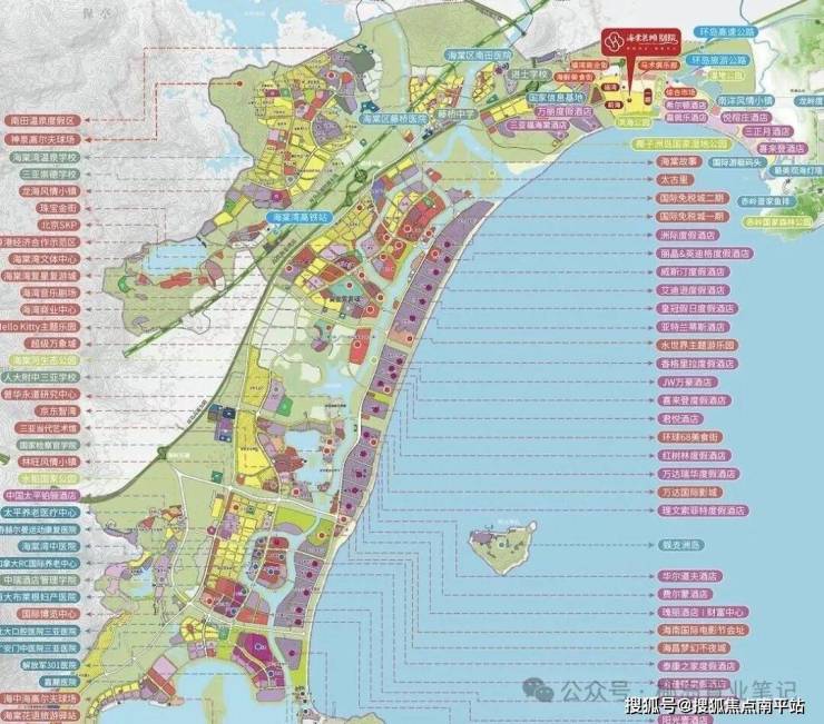 🏦 繁华商业:全球最大单体免税城、免税城河心岛商业中心、超级万象城(在建)、太古里(在建)、宽窄巷子海南故事(在建)、海棠湾68商业街等