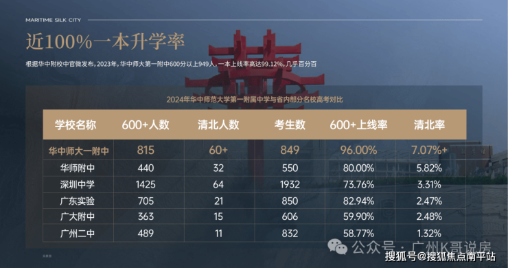 一本率600分以上949人(含少年班、竞赛保送清北人数),600分率90%,华南师范大学附属中学600分率只有80%,广东实验中学82.94%。