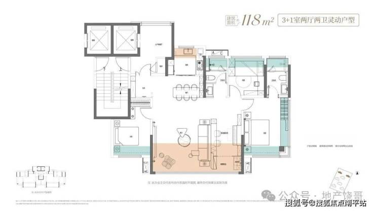 再说户型设计,全系就2个户型,118、128平,小高独立电梯厅设计,洋房是一梯两户贯通梯,独立电梯厅太喜欢了,私密性拉满。