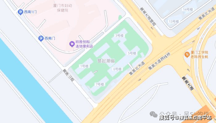 地处集美北大道和集美大道交叉口西侧,东靠集美大道,南临集美北大道,距集美软件园三期1公里左右,处于集美新城的边缘后溪板块,由于被主干道分割,旁边只有一个安置房和长租公寓,缺乏生活氛围,像一个孤盘,商业配套空白,大型的商业配套都要到3公里开外去了,商业氛围也匮乏,大家不要被宣传册上面的“集美新城芯”给迷了眼。