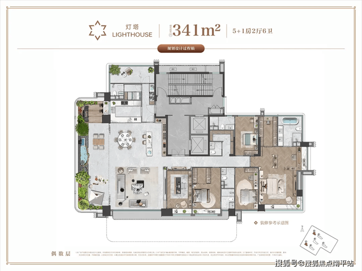 ③户型为 建面约218-341㎡四代空中平墅,是泉州 首创T1四代产品,做到 最高约3.3米层高、超高得房率、户户专属前庭后院+空中花园,建面约341㎡户型更是做到 “一层一户”的稀缺配置。售楼处免费咨询热线:400-159-8559转8666【售楼中心】