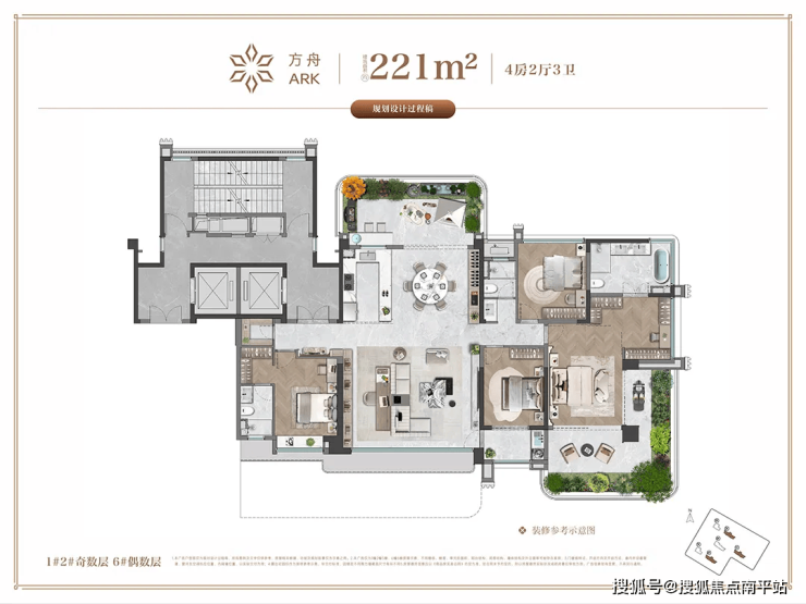 ② 东海首座纯粹四代天际平墅,项目规划6栋高层 全系218㎡起步的四代住宅产品,全盘仅224套,高阶圈层纯粹。
