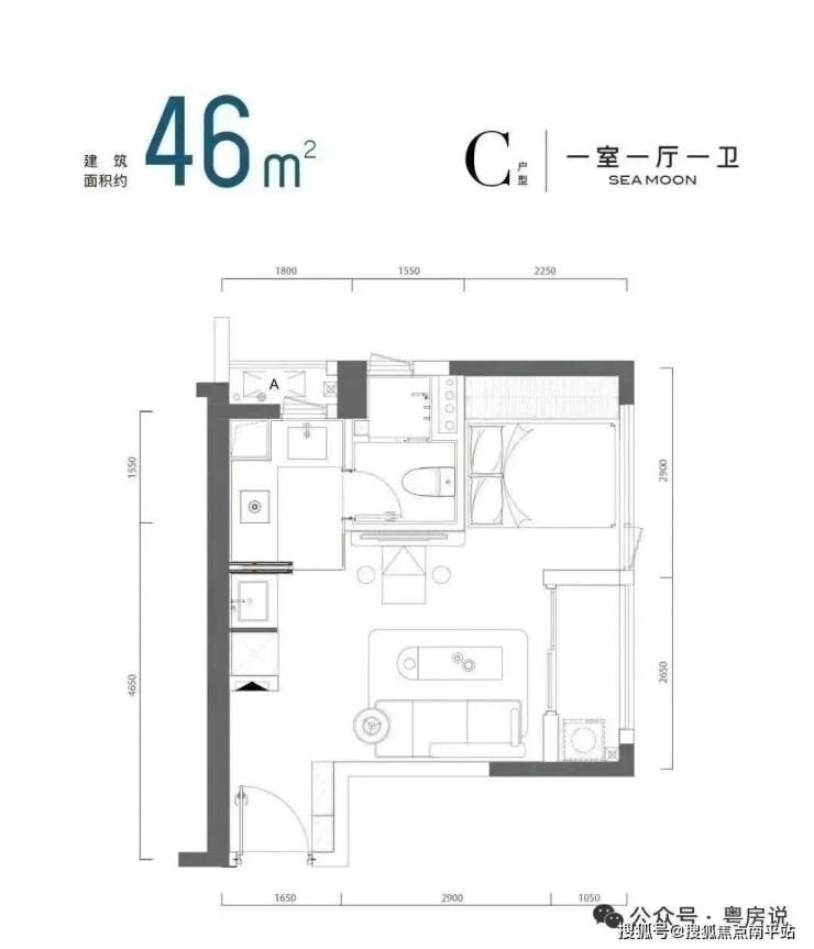 46㎡左右的一房一厅C户型 备案总价约:369-444万