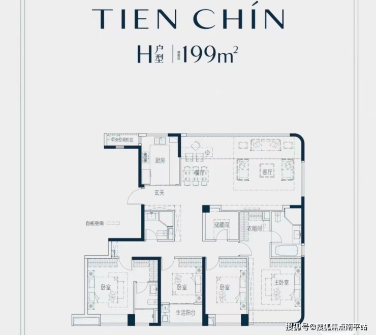 主力户型:主推110-112㎡、123-125㎡、144-150㎡、163㎡、186-189㎡、189-192㎡、199㎡七种户型