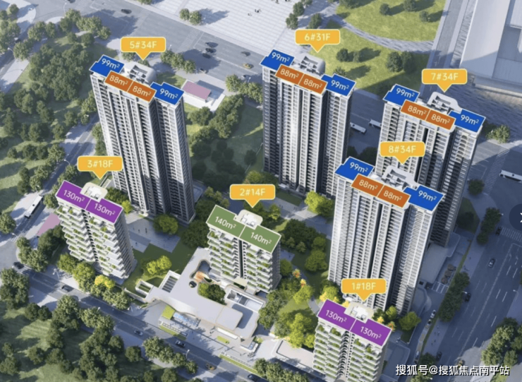 首开楼栋:首开1#(四代小高层)、8#(普通高层),共166套住宅,主力产品四代小高层128-130㎡4房34套,普通高层88㎡3房66套、99㎡3房66套。