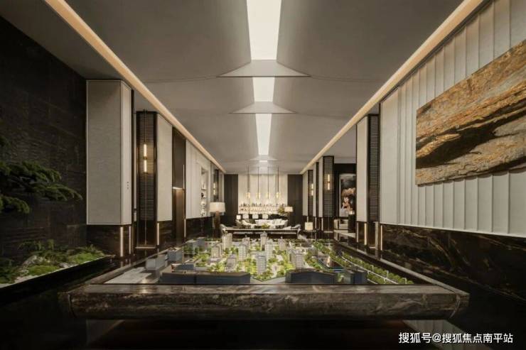 删繁就简,唯余通透,环形灯带与壁灯以光裹住场域,柔光掠过微景绿植与碎石造景,将园林的松弛隐入现代材质的精致——是轻奢的仪式感,也是禅意的静。