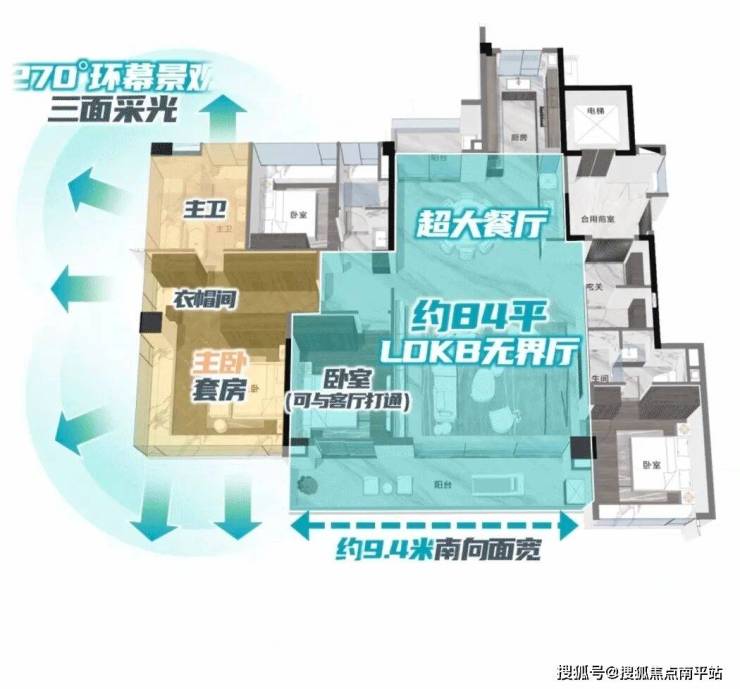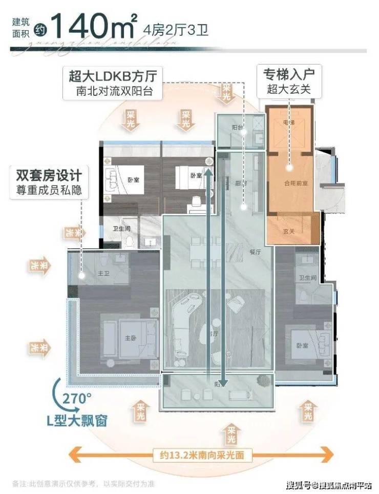 3、窗地比高达38%,主卧设置270°大飘窗。