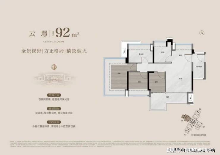 L型双面宽阳台+东南向视野:双面宽阳台延伸观景面,东南向俯瞰城市与园景,采光与视野双重拉满;