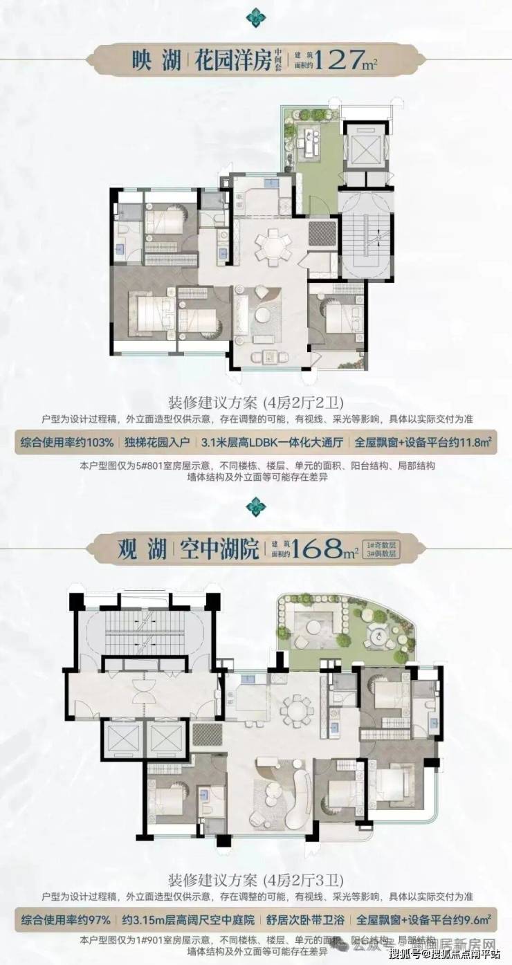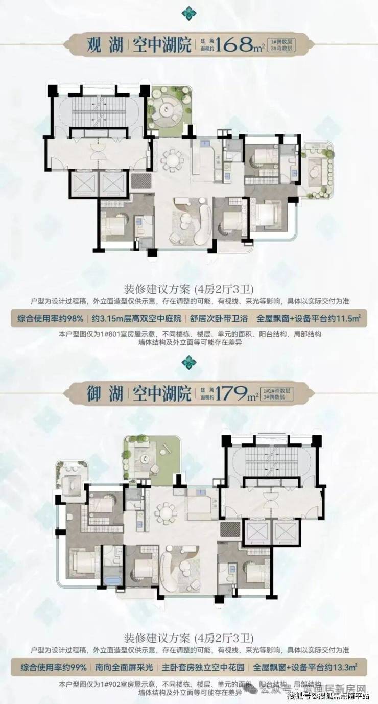 125㎡洋房创新性地实现了四房两卫的全功能布局,且保证各空间尺度舒适;179㎡大平层则通过270°转角露台设计,最大化引入湖景资源,提升居住品质。