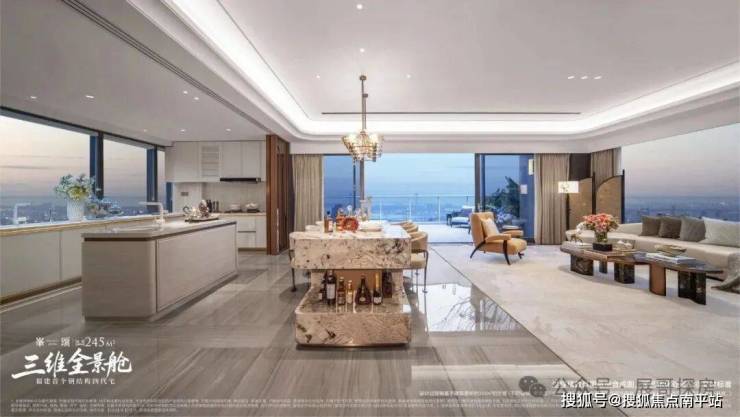 ○格局:270°三维全景舱,270°环幕视野;主卧套房+双次卧,动静分区; 约3.3米层高 ,公区全玻璃幕墙