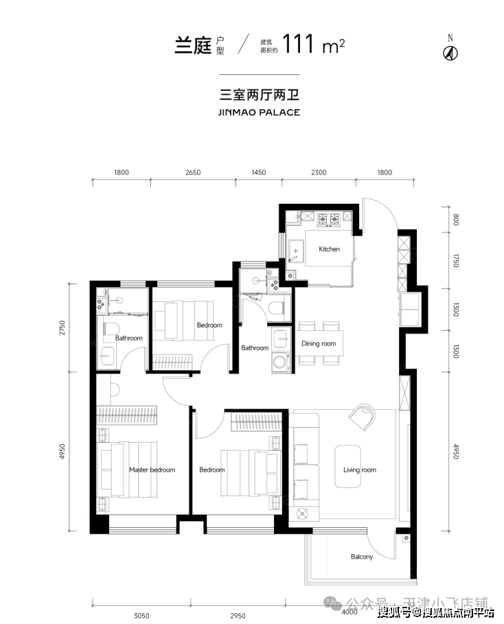 A户型 111㎡ 360-420万元 3室2厅2卫 布局紧凑实用,适合首改家庭