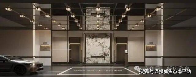 单元入户大堂开阔、大气,归家仪式感拉满。车库落客光厅采用镜面不锈钢材质与铝板雕花工艺,车道地面铺设水磨石,车位采用金刚砂固化地坪,兼顾耐久性与高端质感。