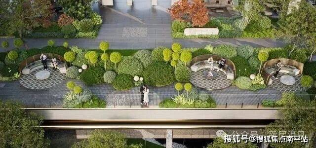 它是 片区首个把立体生态庭院搬到楼下 的小区,巧妙融合山水、绿植与建筑,有潺潺水景、错落绿植,还有精致的廊桥、休憩平台等,营造出层次丰富、自然雅致的立体景观,让居民在不同场景中都能感受园林之美与生活之趣。