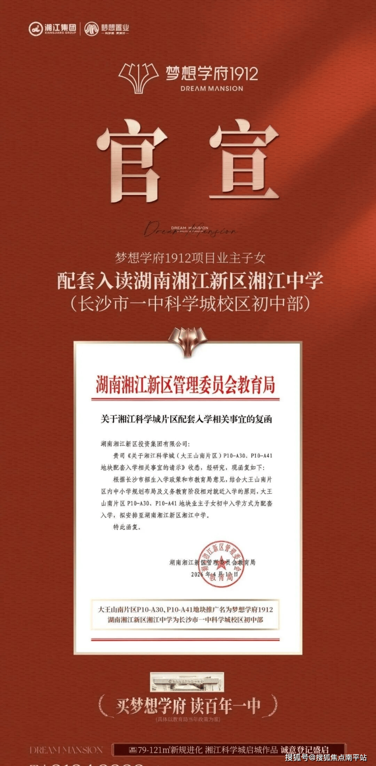 近日,梦想学府1912拿到了湖南湘江新区教育局红头文件: 明确楼盘业主子女配套入学长沙市一中科学城初中部。