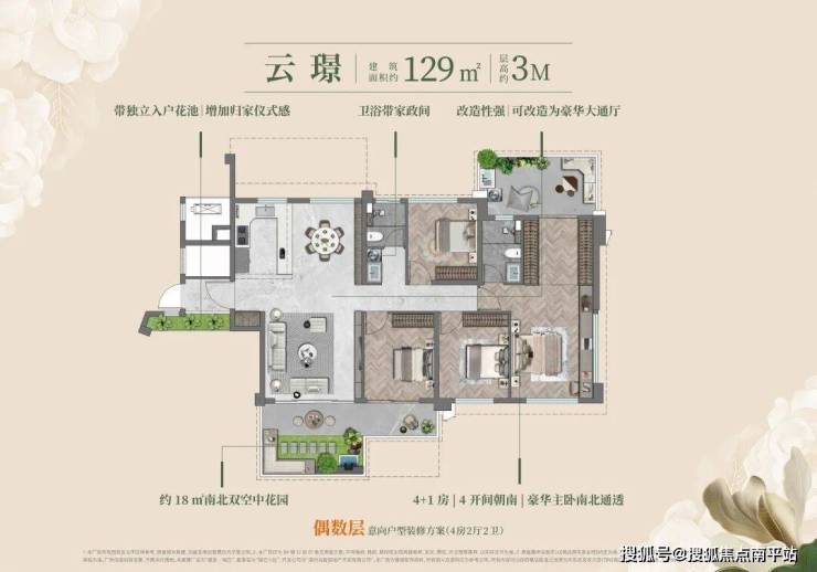 户型亮点:户户皆端套、户户赠送空中花园,得房率高,部分户型得房率可达100% - 130%,如96㎡可做标准四房,170㎡实际使用面积可达220㎡左右。