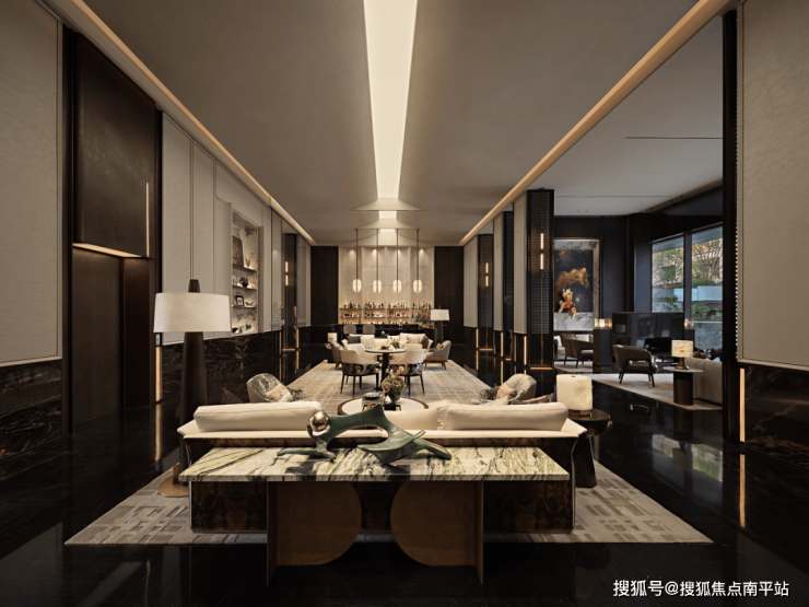 从前厅的“迎与静”,到水吧的“遇与止”,再到深洽的“合与缓”,以沙盘完成“聚与望”,以过厅“美与停”,以会所“趣与生”,这条完整动线,起承转合间,本身就是东方式生活哲学的空间化呈现。