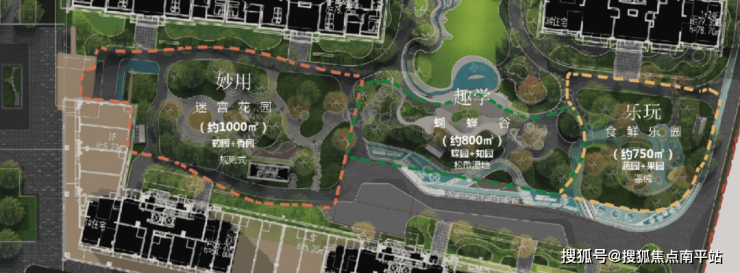 它占地约2000㎡,分为迷宫花园、蝴蝶谷和食鲜乐园三大主题板块,这里有认知植物的知园、探索昆虫世界的蝶园、孕育丰收的果园、体验播种与收获的蔬园,沉浸芬芳的香园、饱含药用植物能量的药园。