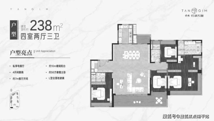 项目为改善豪宅定位,全部4房起步,装修标准、社区规格调性高。下面先看首期地块产品: