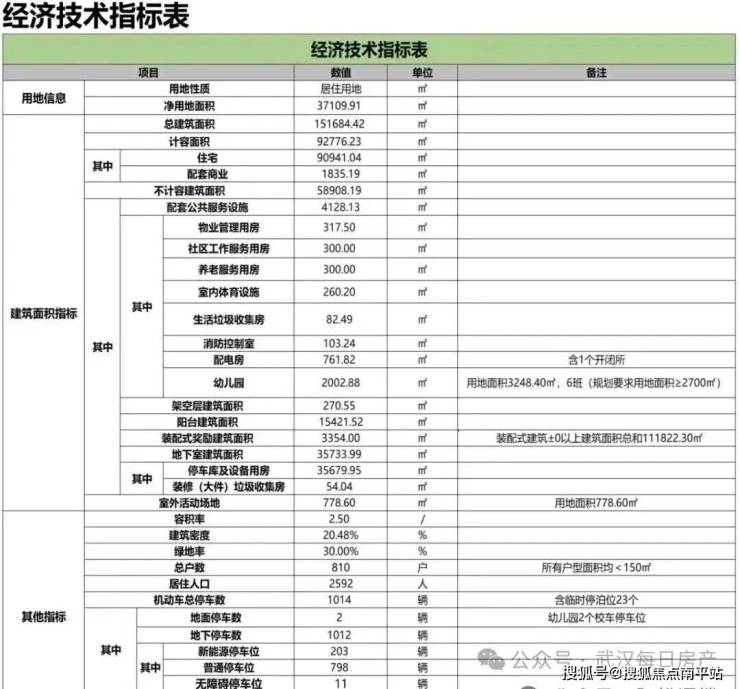 经济技术指标: