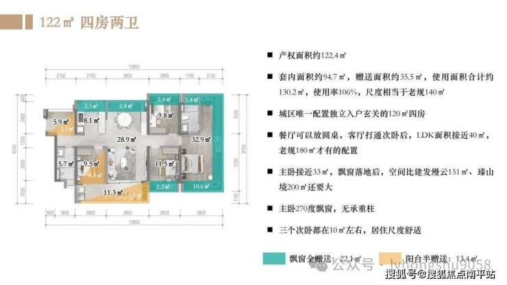 ④主卧超大尺度:接近33m²,对标旧规150户型