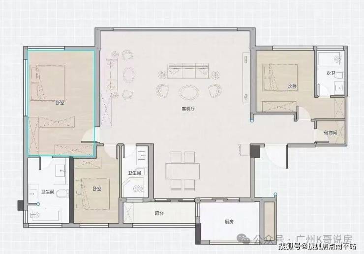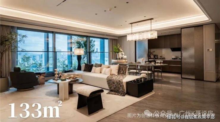 133㎡大平层 , 四叶草+横厅设计 在广州独一无二,客厅甚至不需要打通,就能实现 约7.4米大宽厅 ,媲美170㎡大平层。