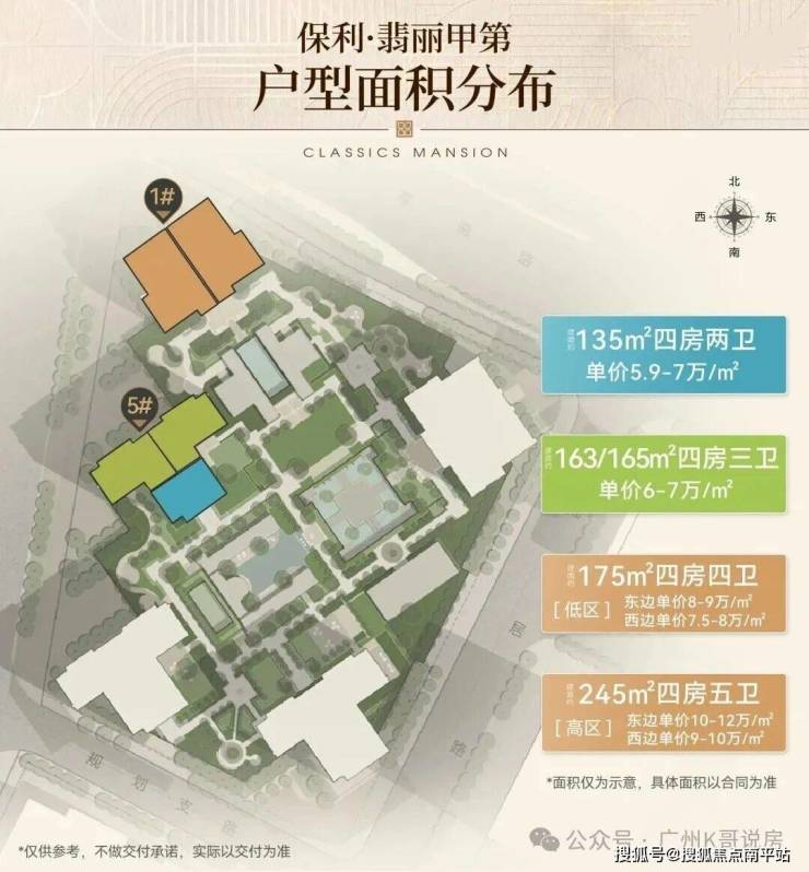 共5栋楼,总高56-58层,首推1/5栋,1栋57层,43层以下是两套175方的,45-57层是一套246方的,5栋是塔楼,一户139,两户163,超新规产品,得房率130%。