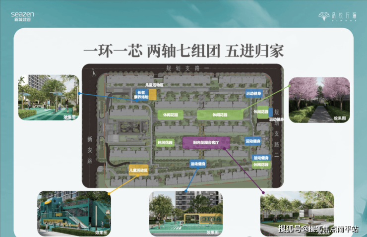 【礼序归家】一环一芯 两轴七组团 五进归家 宋代园林规制,以全龄乐享的自然绿境,打造多主题观景架空层,约700米健康生活环,串联7大生活场景,筑就雍阳西道首个度假式酒店园林景观。一环:约700米健康生活环;一芯:约10000㎡阔景下沉花园;两轴:横轴多重礼仪归家轴;纵轴漫步森享轴;七组团(七大生活场景):竞技秀场、飞鸟课堂、智趣天地、云霄雅阁、秋雨花溪、微风田园、朝阳翠林
