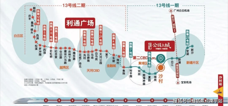 目前在建13号二期横跨黄埔天河越秀荔湾和白云五大主城区,比肩3号线黄金动脉,开通后无须换乘,一轨直达珠江新城(花城广场北站),尽享主城繁华。