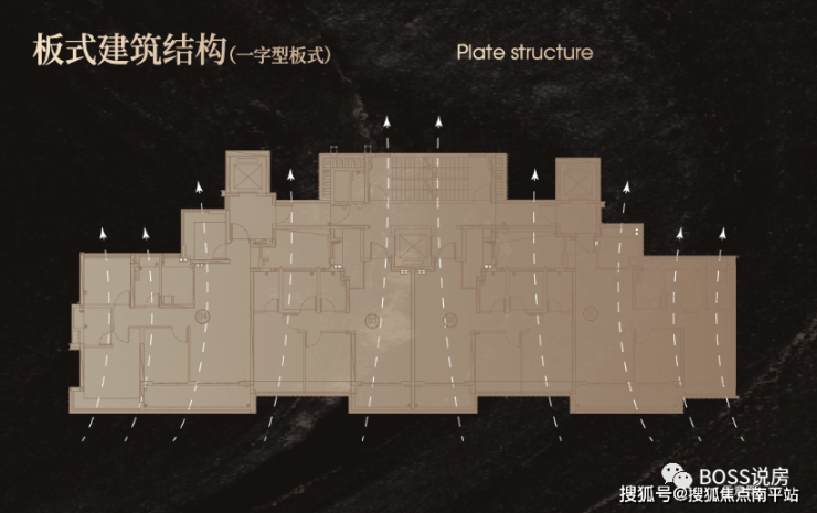 纯板式一字排开,楼间距宽(约 55 米),私密性与采光观景俱佳,在售户型有107-124-143-145-170平,使用率高达115%