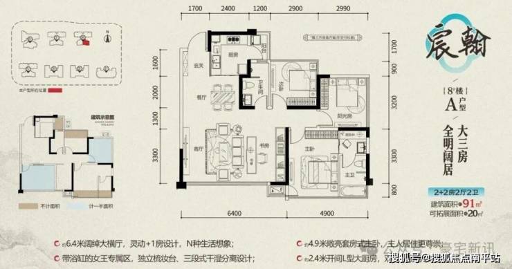▌建面约91㎡全明阔居大三房 (可拓展面积约20㎡)