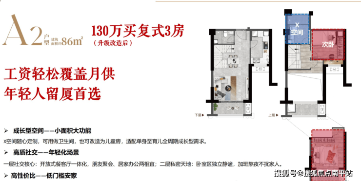 【产品面积】建面约86-135㎡复式“2+1”房、4房