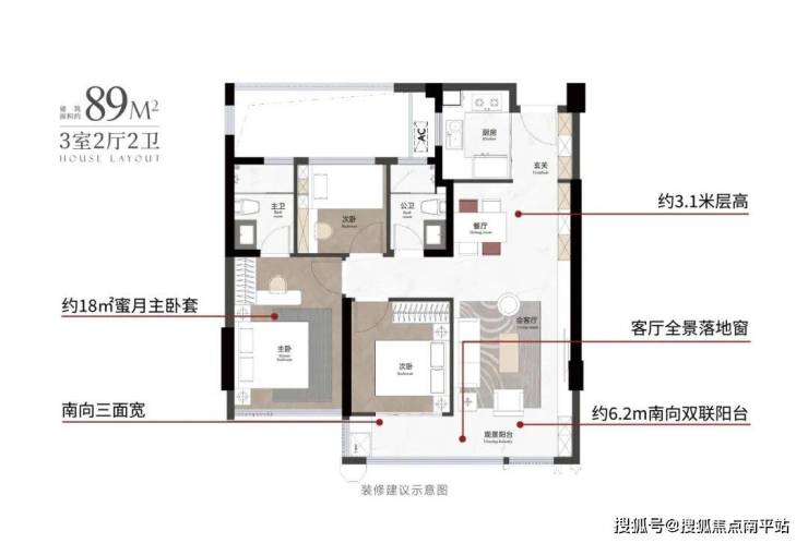 即便是最小面积89㎡,同样享受3.1米的奢阔高度