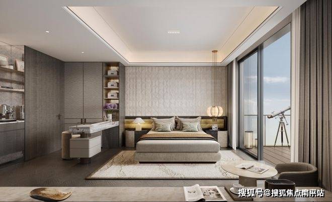 公共空间大就算了,关键是主卧也非常的大,这就很牛了!进深不仅能够放下双床头柜,而且还能做个梳妆台或者是水吧台,实在是太优越了!