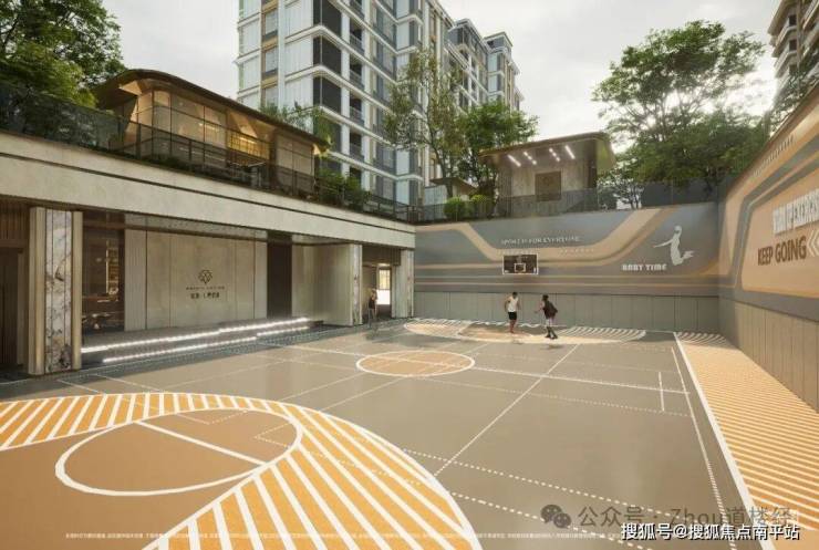 下沉式运动场,篮球、羽毛球、排球三合一,与全龄健身花园交织,动静分区,满足家庭多元运动需求,赋予生活鲜活的松弛感。