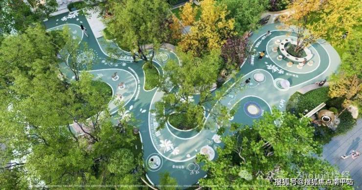 津彩成长公园打造“先游园,后归家”的归家礼序,内部融合橡果乐园、亲子互动寻索营地、草坪剧场等功能。