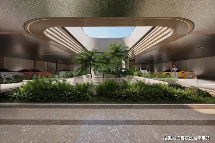 3. 生机奢阔的车库空间丨①生境之斗:自然渗透入地下空间,改善地库采光、通风条件。②豪车尺度 :车道变坡小于6%,加宽加长车位,满足豪车行驶、停放要求。③后勤环线:背巷式设计,串联各个归家岛屿核心,通过万物仓、物资垃圾回收、司机室组成全面的服务核心。④酒店式归家大堂:暖色材质搭配柔和光线,营造出极具装饰感与仪式感的温暖氛围。