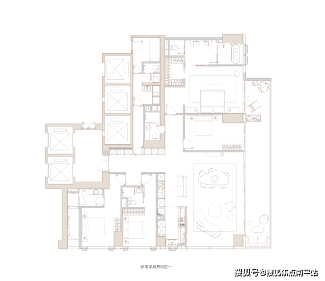 ▲建面约305㎡户型——参考布局1
