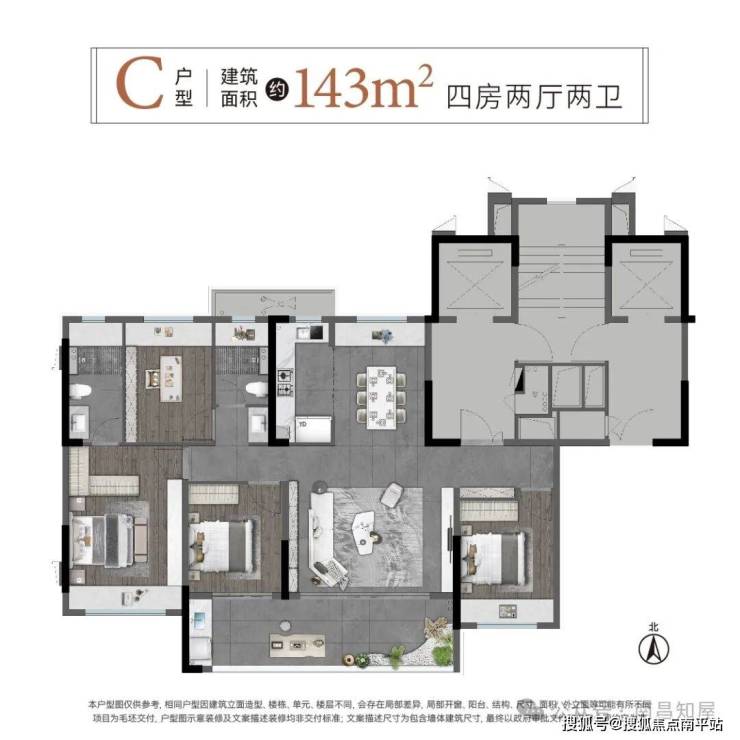 四房两厅两卫,二孩家庭升级舒居