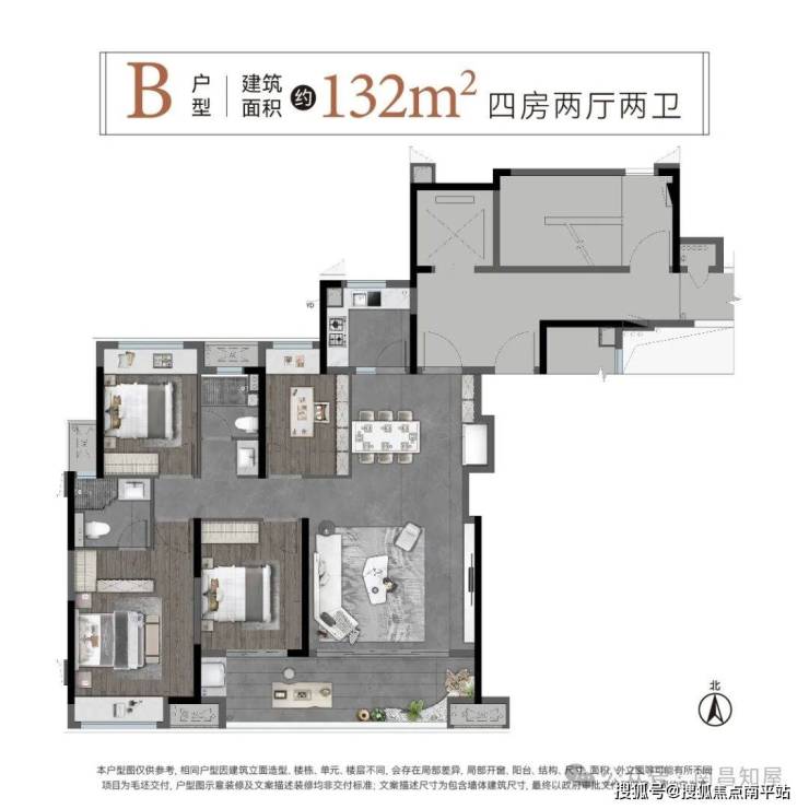 建面约132㎡多功能户型: