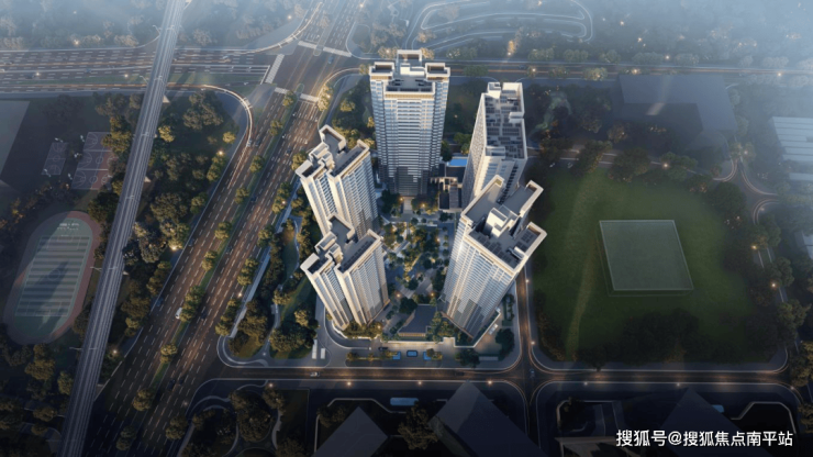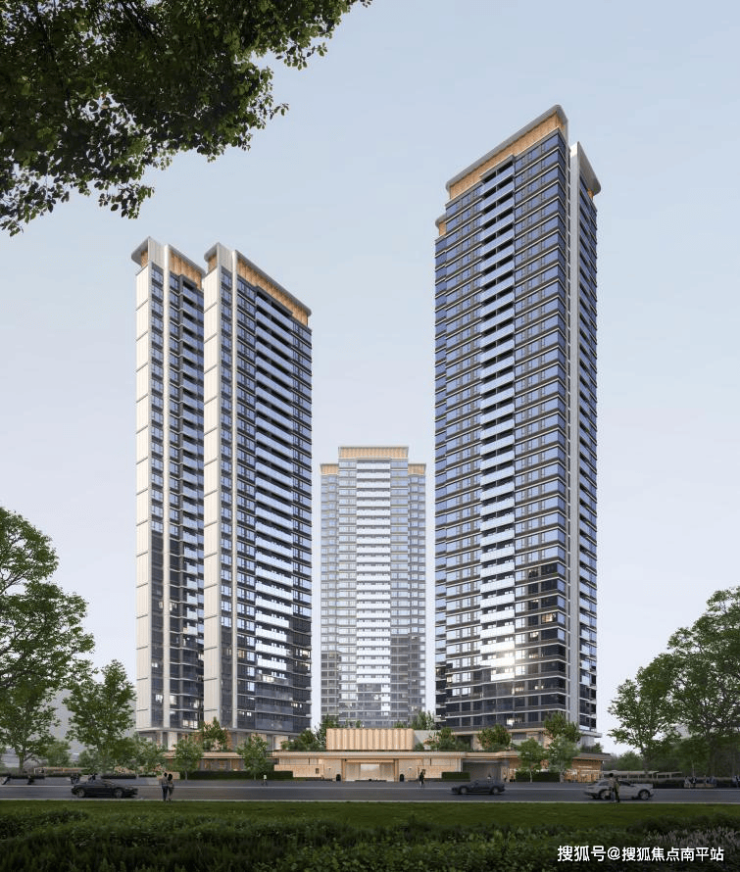 首期地块整体规划8.6万m²社区,其中住宅5.8万m²,31-38层高层建筑,共计589户;充分利用地块面宽进深条件,形成围合式布局设计,最大化内部园林景观资源;在围合楼栋的基础上,专项研发适配楼型,对比竞品传统楼型设计,实现T4-T6舒适梯户比和全盘四面宽户型,为舒适人居产品提供基础条件框架。此外,通过定制楼型和设计手法,使小区每一户视线错落有致,同时,实现楼间距最大化。