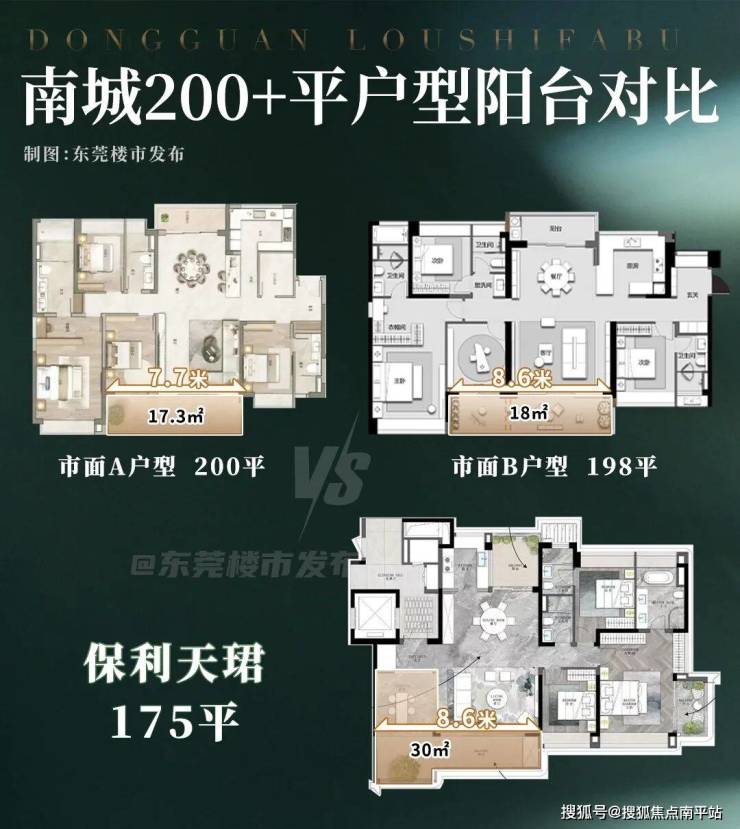 与市面上200+平户型相比,不仅在阳台长度上毫不逊色,面积上也远超同行近10平。
