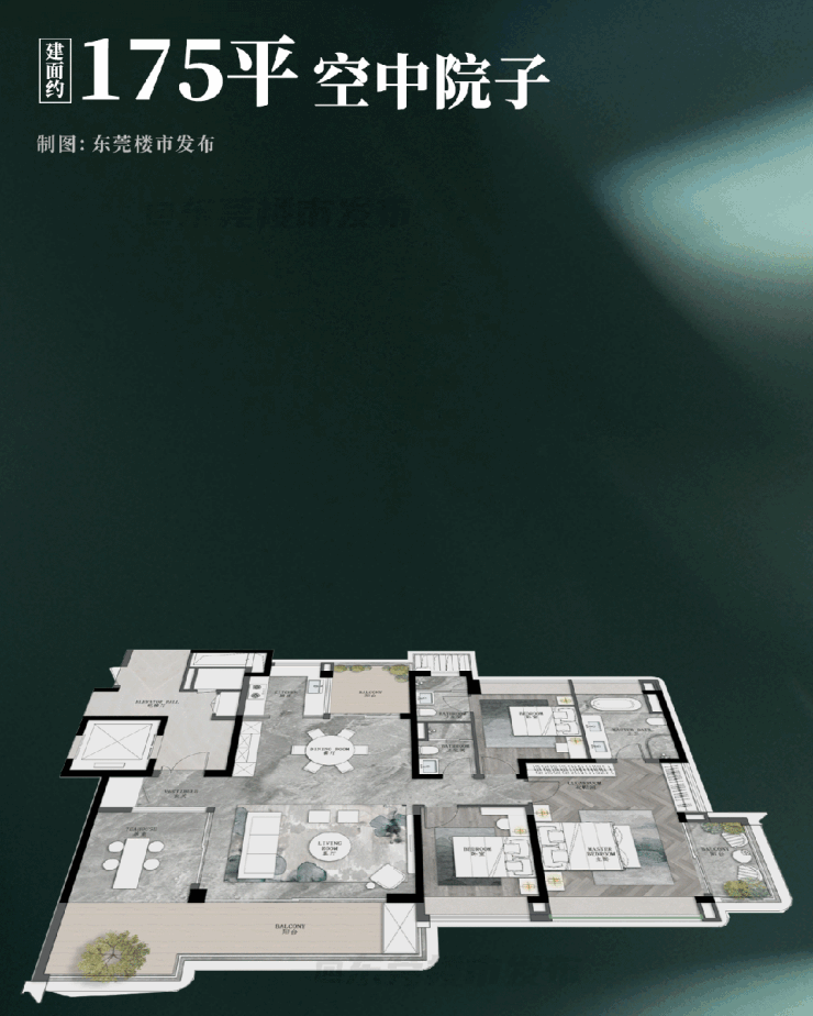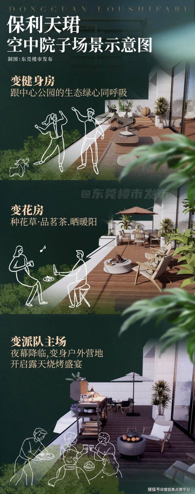 但保利天珺创造性地把院子搬入空中,让住惯了院墅的东莞老板们,既能保有院墅的舒适感,也能享有高层洋房的景观。
