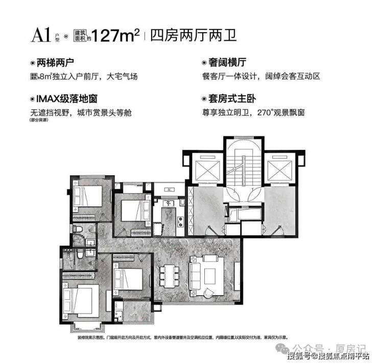 •主力户型涵盖126-199㎡,有4室2厅、5室2厅等多种户型;如126-141㎡的4室2厅户型,南北通透,采光良好;192㎡的4室2厅户型,配备独立入户电梯厅,主卧带步入式衣帽间与卫浴套房;➢➢预约参观热线☎400-159-8559转分机号8666【售楼部↓↓预约通道】