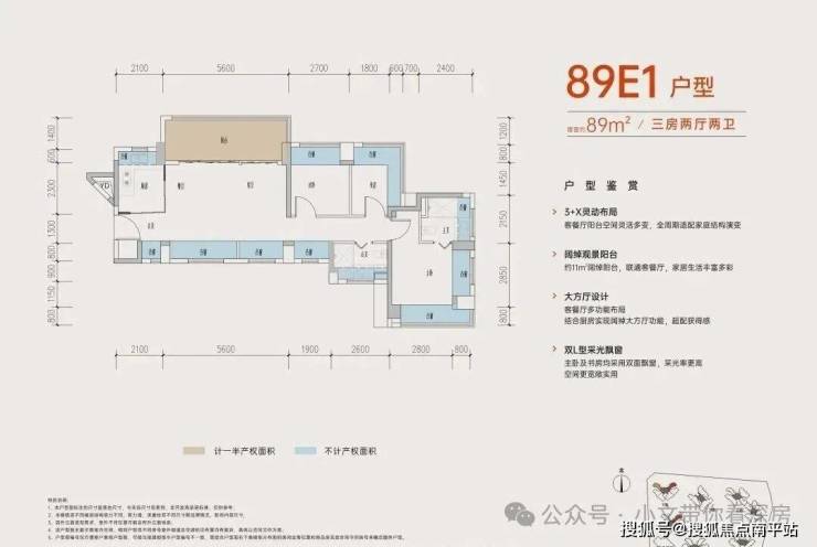 89㎡ A 户型为 3+1 房 2 厅 2 卫设计,竖厅布局搭配南北通透格局,通透感与实用性拉满!入户设有独立玄关,保障居家私密性;客厅开间达 3.5 米,空间开阔舒展,更实现五开间朝南,采光通风效果极佳。卧室尺度亮眼,主卧 15.73㎡、次卧 14.08㎡、小次卧 8.96㎡(均含墙体与飘窗),主卧更做到南北通透 + 双飘窗设计,舒适度拉满。