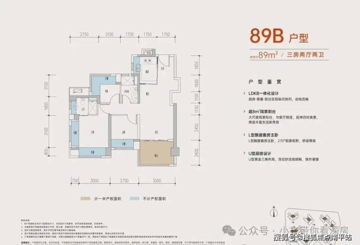 89㎡ B 户型为经典 3 房 2 厅 2 卫竖厅设计,空间布局规整实用,居住舒适度拉满!入户配置独立玄关,有效划分功能区域,保障居家私密性;客厅开间达 3.5 米,搭配三开间朝南格局,采光充足、通风流畅,让室内时刻保持明亮通透。