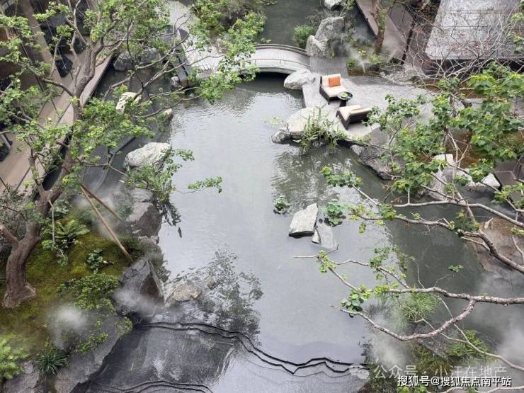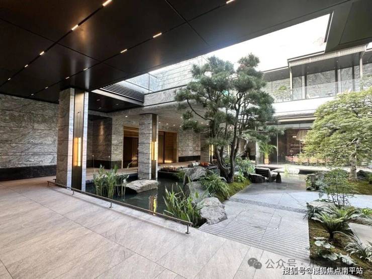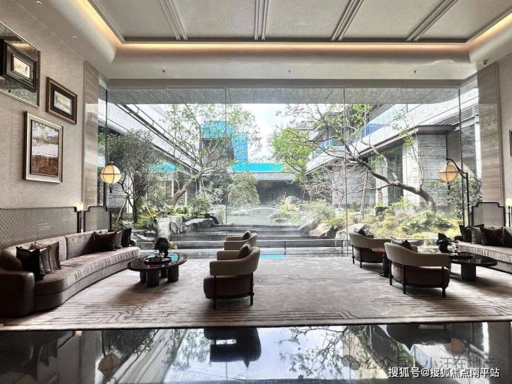 下沉式庭院:约1000方,复刻《溪山清远图》,从东侧“四水归堂”之门,经“十八学士”下沉庭院,景观设计层层递进,通过整面落地玻璃让下沉式景观和归家大门组合一整体,视觉冲击感强,悬挂户外泳池设计,地上地下互相成就景观视野。