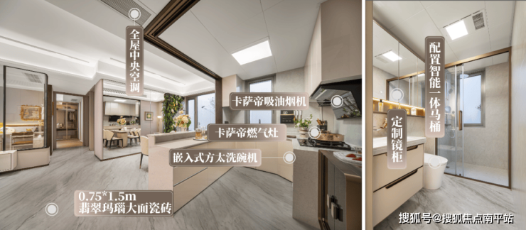 精选摩恩台盆龙头、卡萨帝油烟机、方太洗碗机等大品牌或同档位品牌家具厨电,定制钢木门、翡翠玛瑙大面瓷砖、全屋中央空调等,满足理想居家生活的期待。